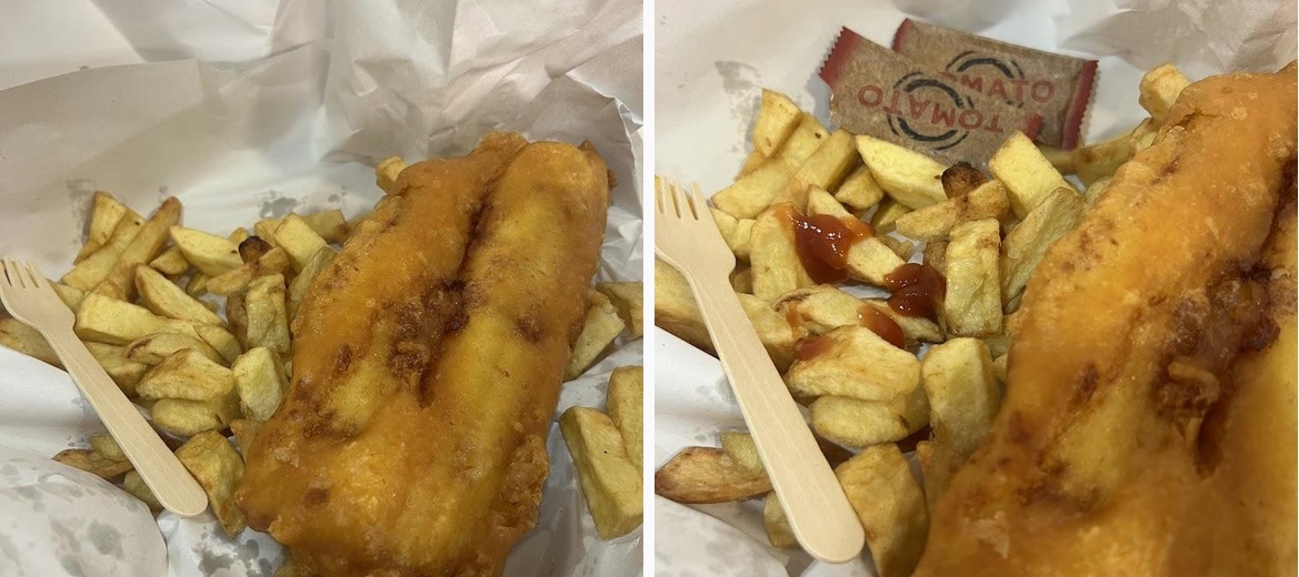 Food was prepared fresh. The cod was piping hot with flaky flesh and good batter. I got a large, and it was indeed large. The chips were chunky and soft with a good firm exterior. Overall, one large cod and chips cost £13.30 which is about the going rate these days and there was enough food to feed two people, so I'm not complaining. Bonus points to the owner for being a top bloke and giving great service. I will be back 👍
